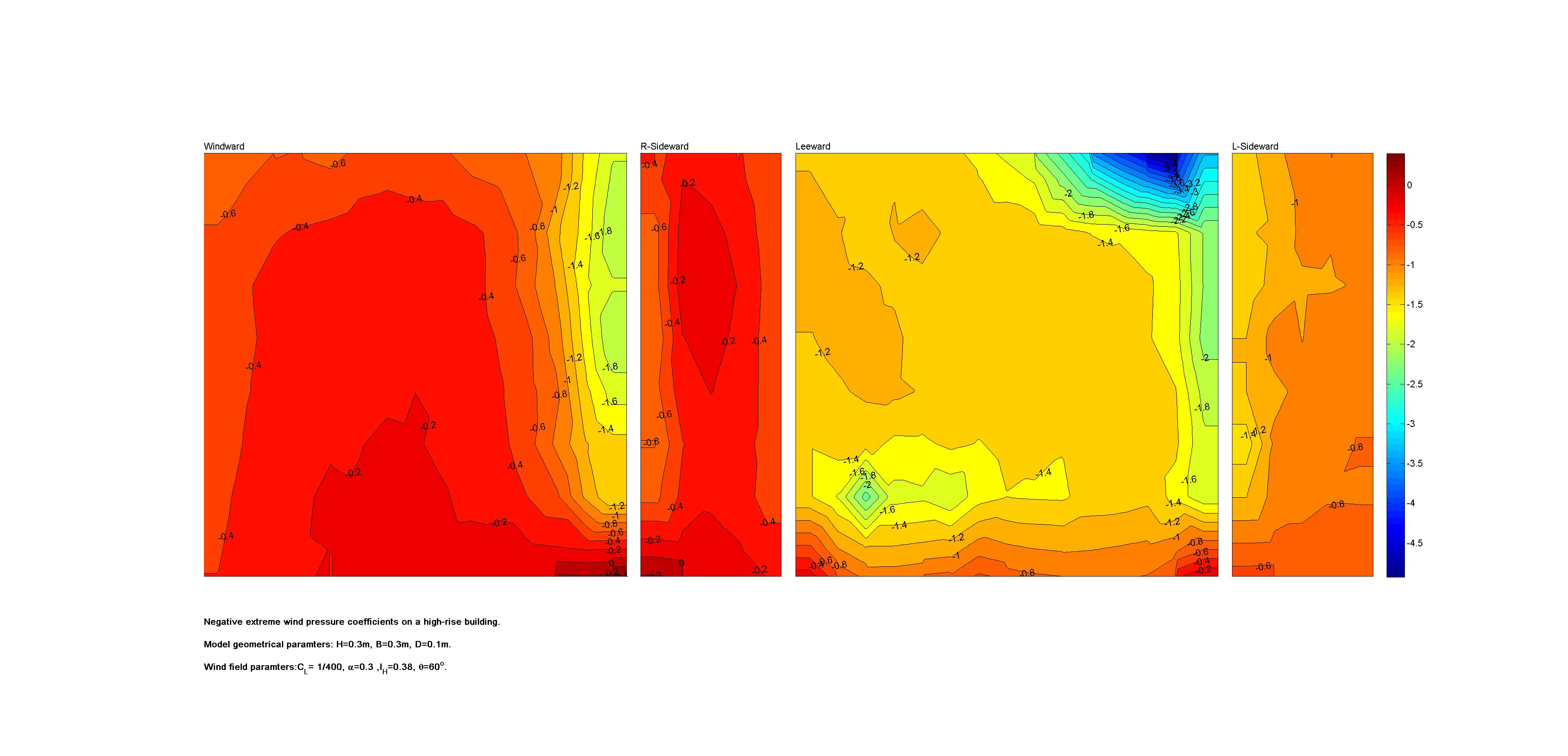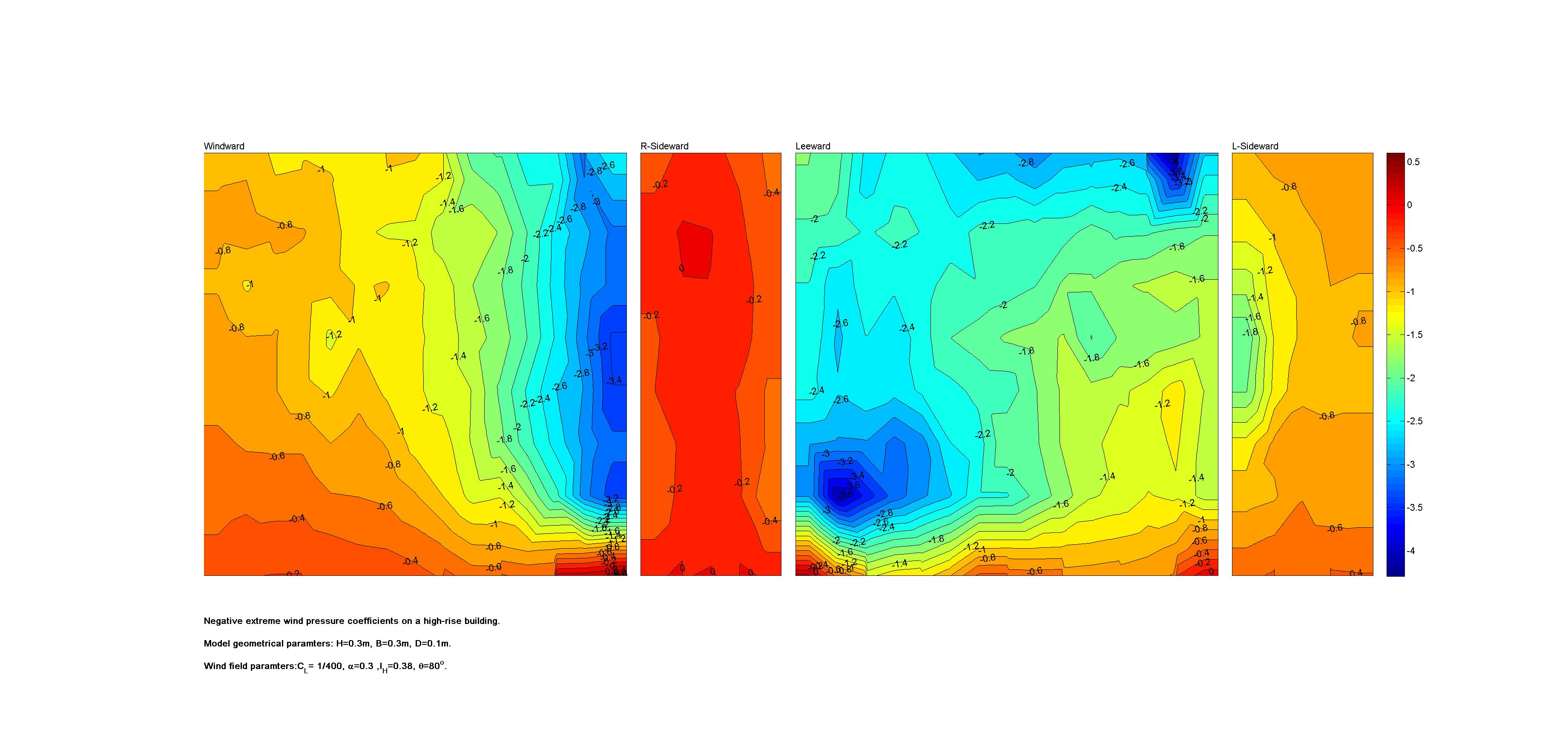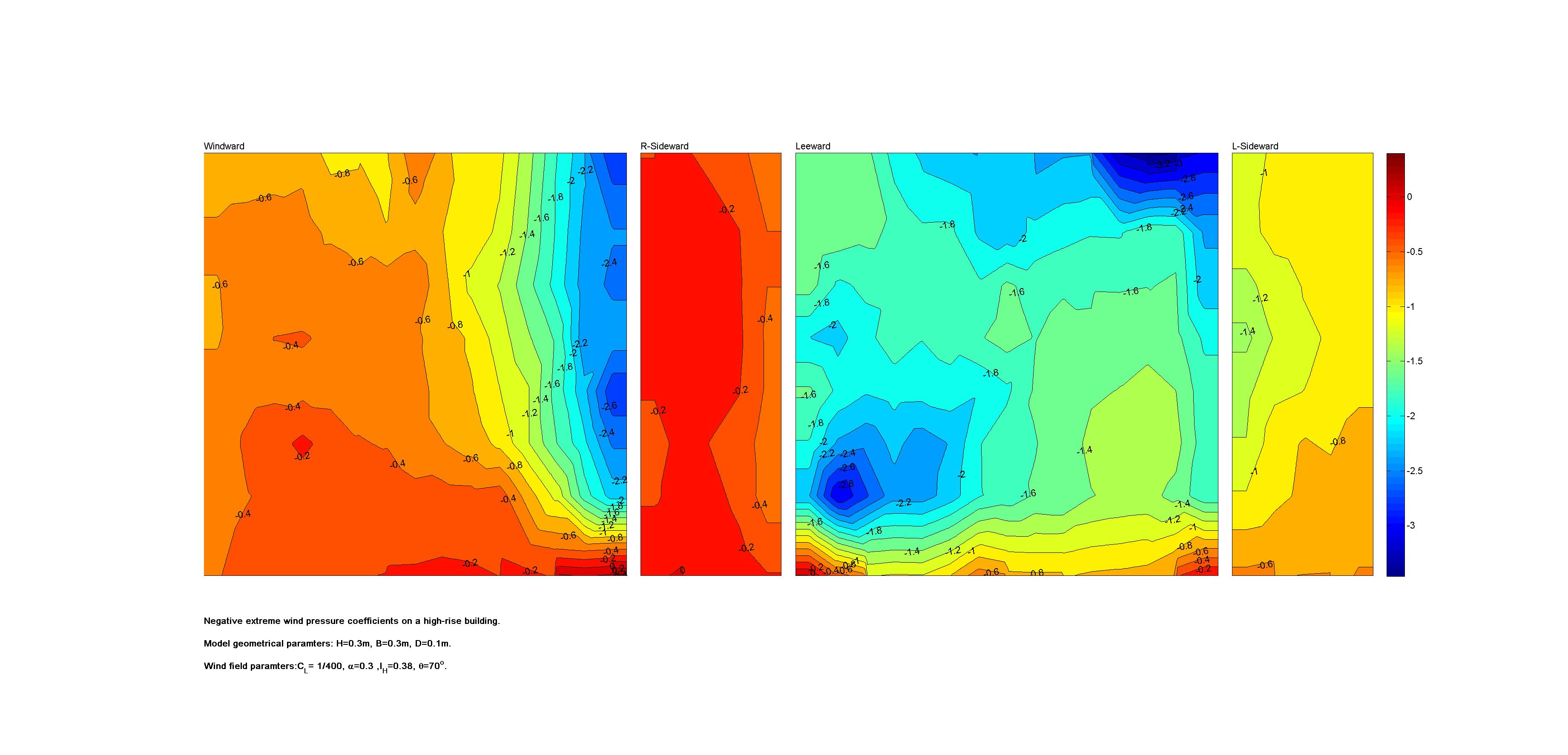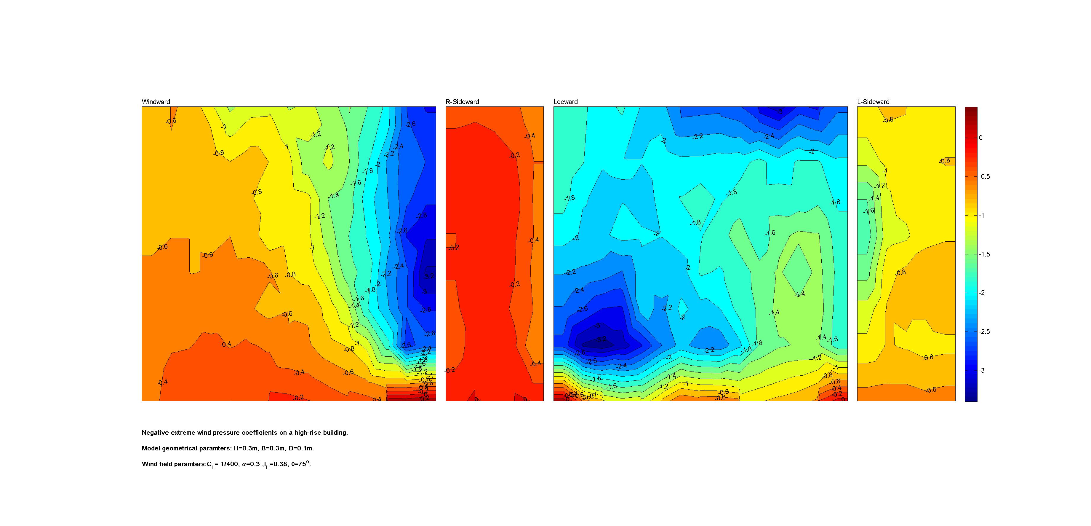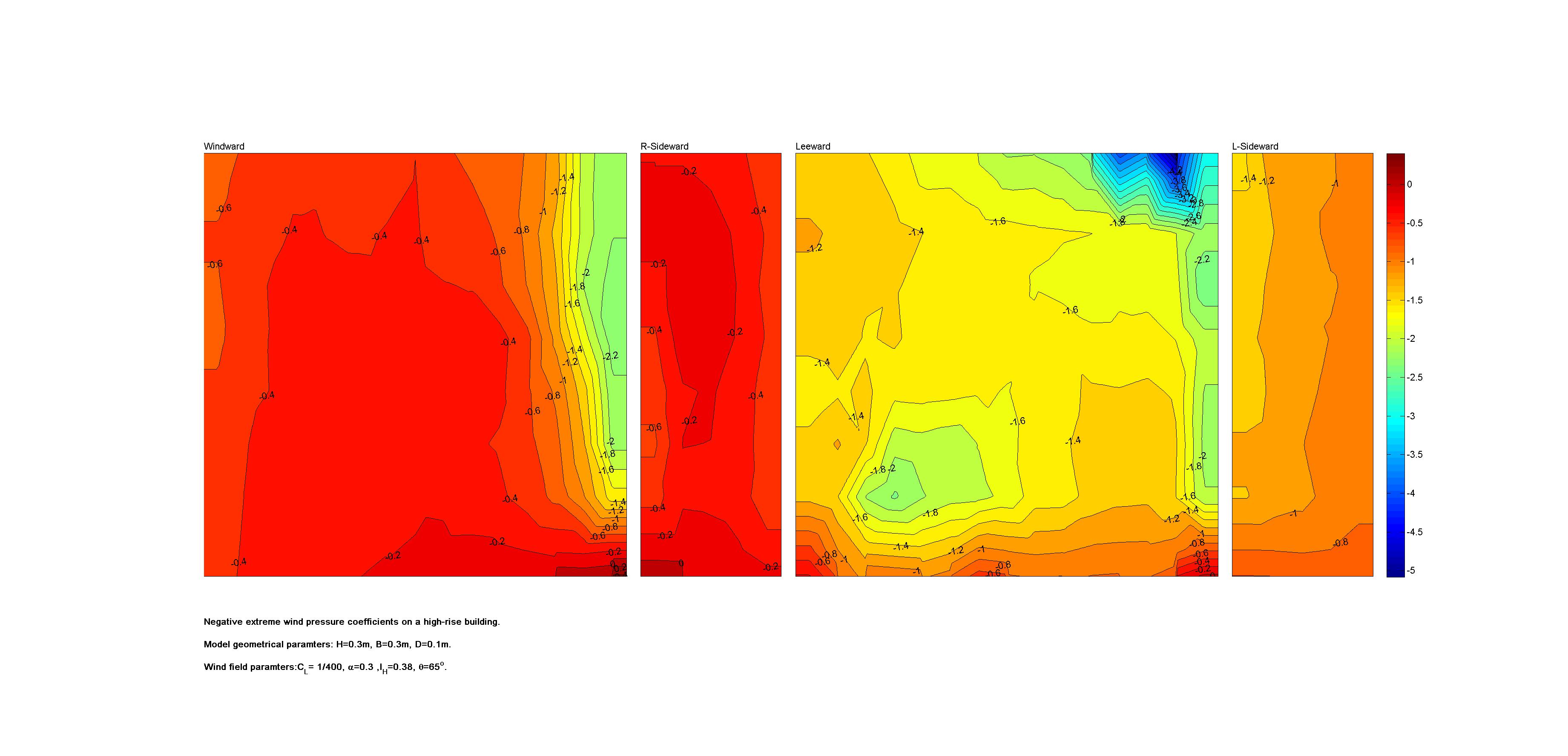 | Contours of local wind pressure coefficients |