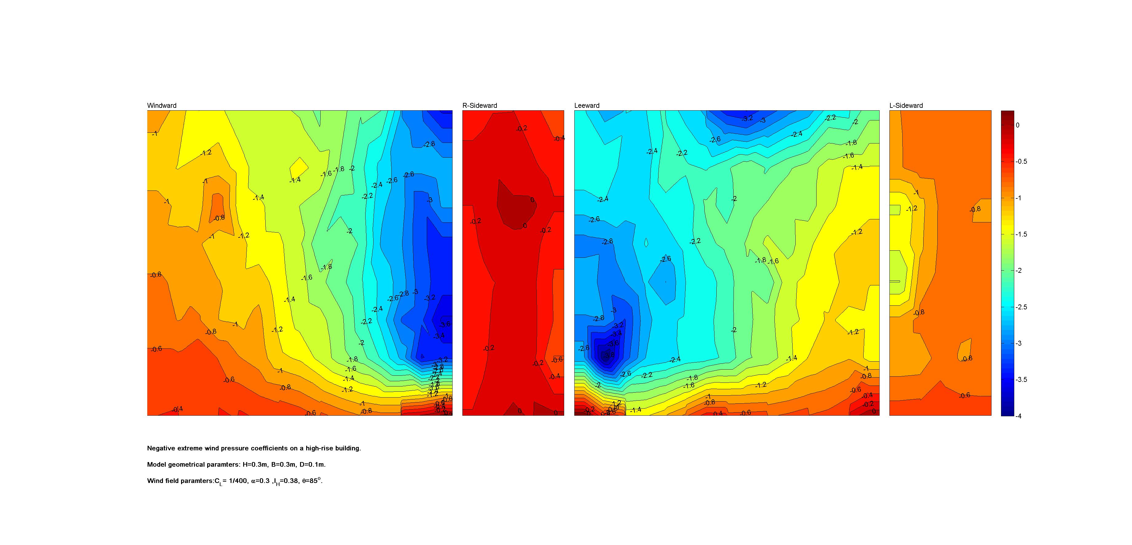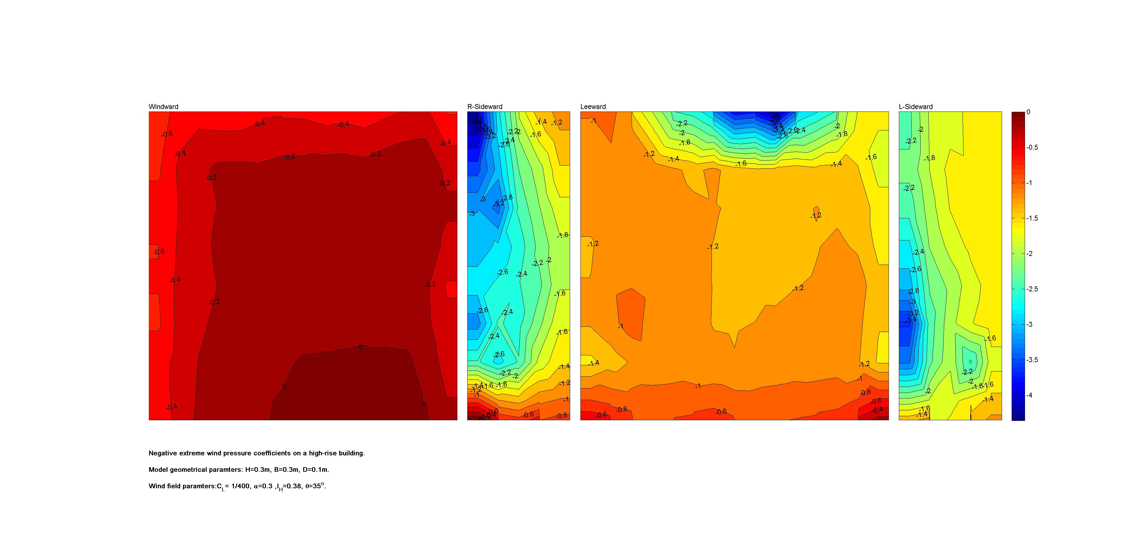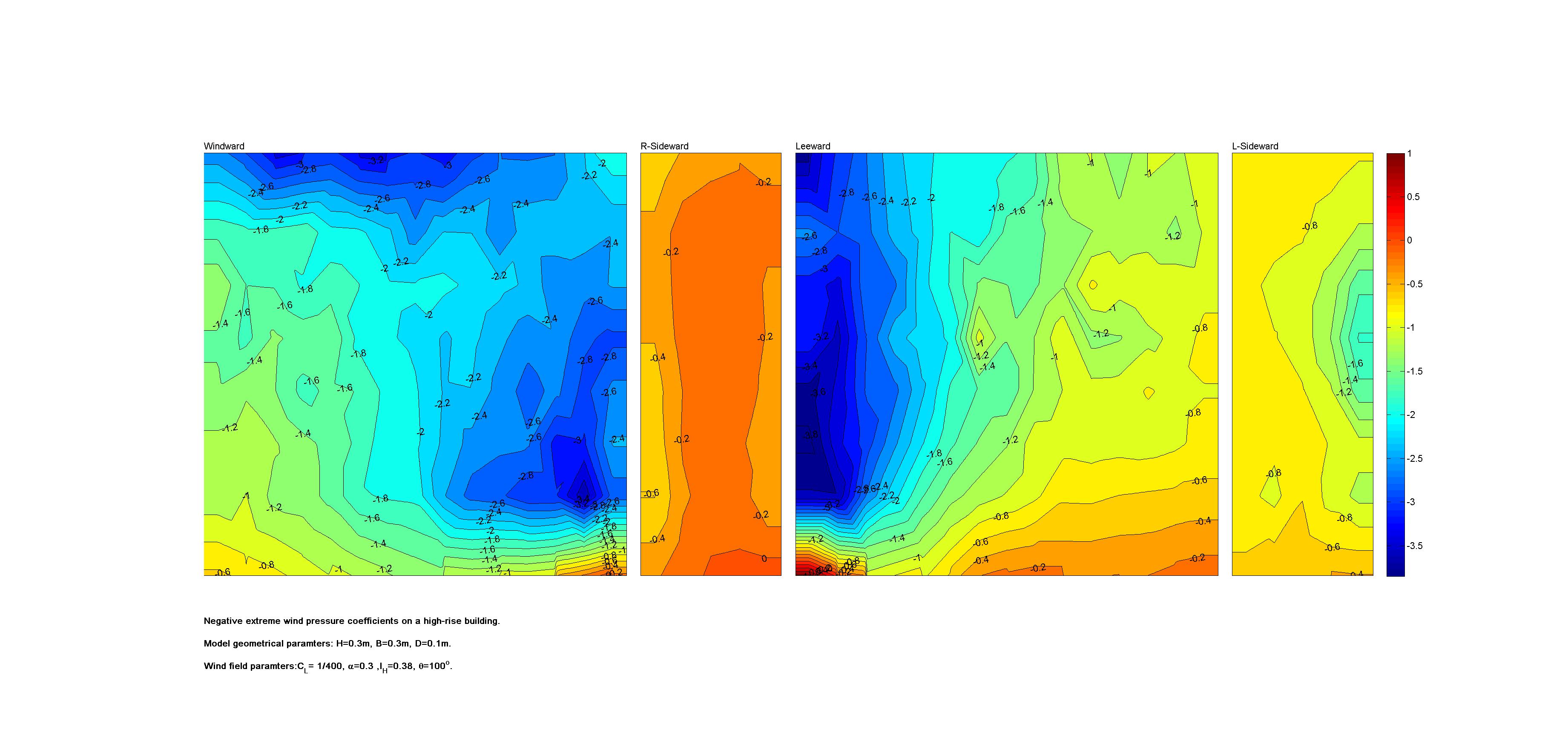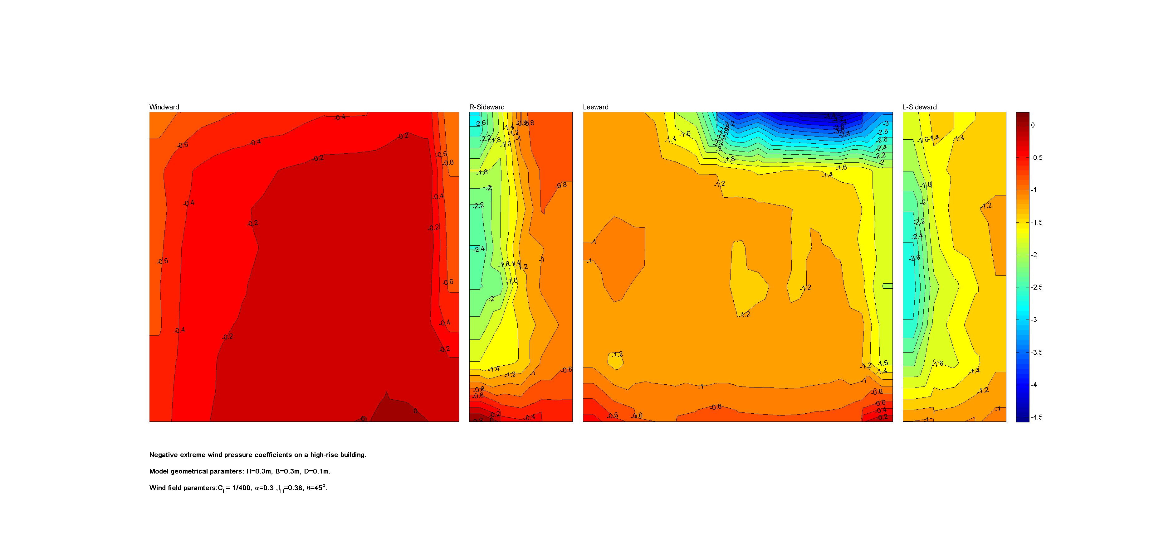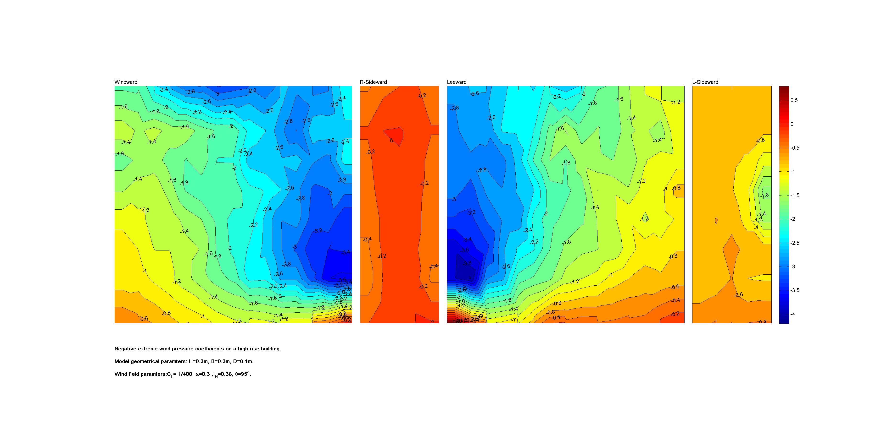 | Contours of local wind pressure coefficients |