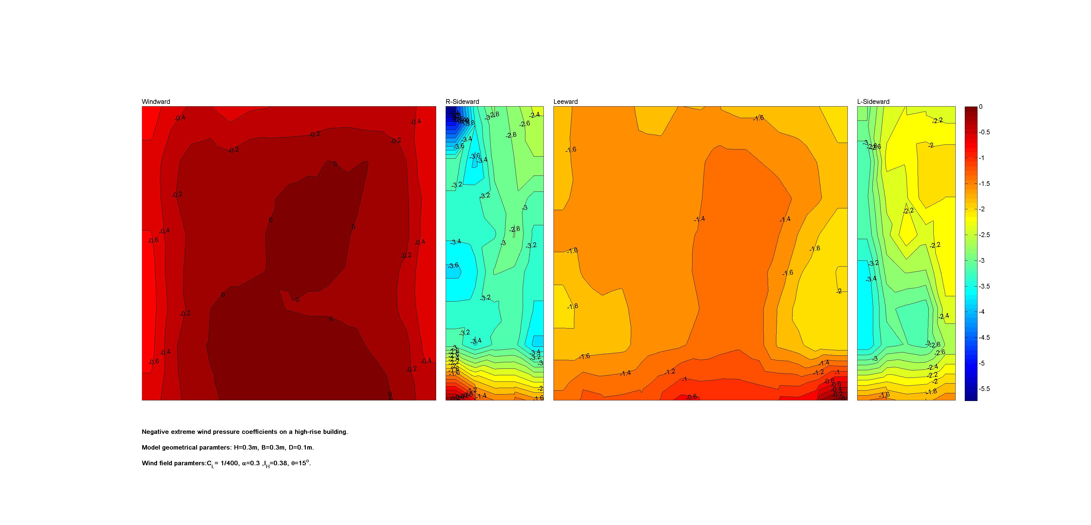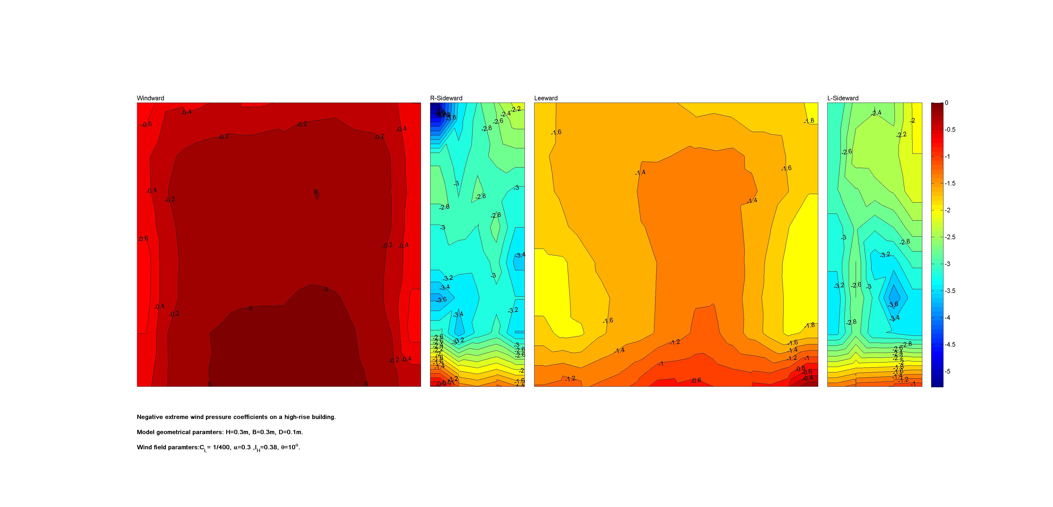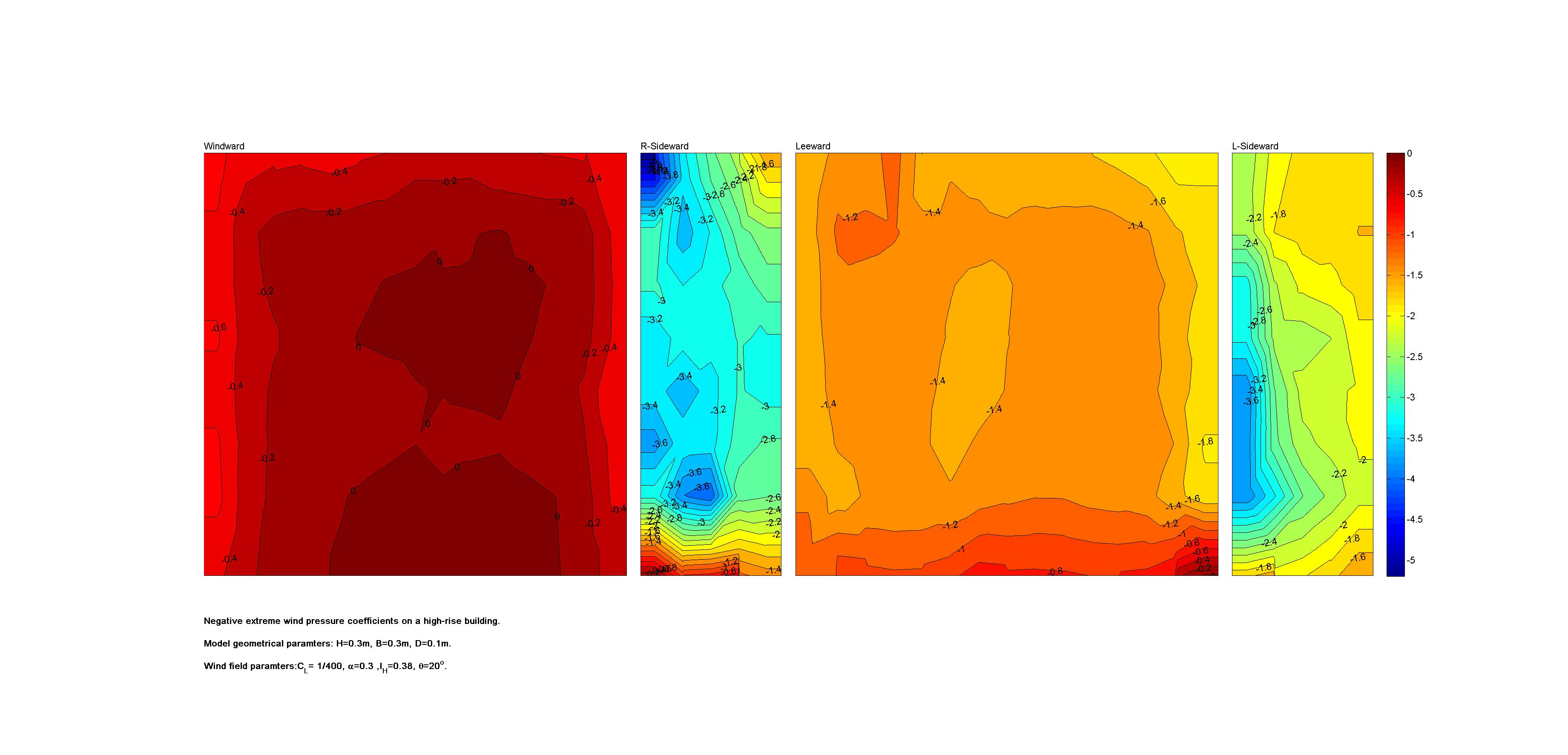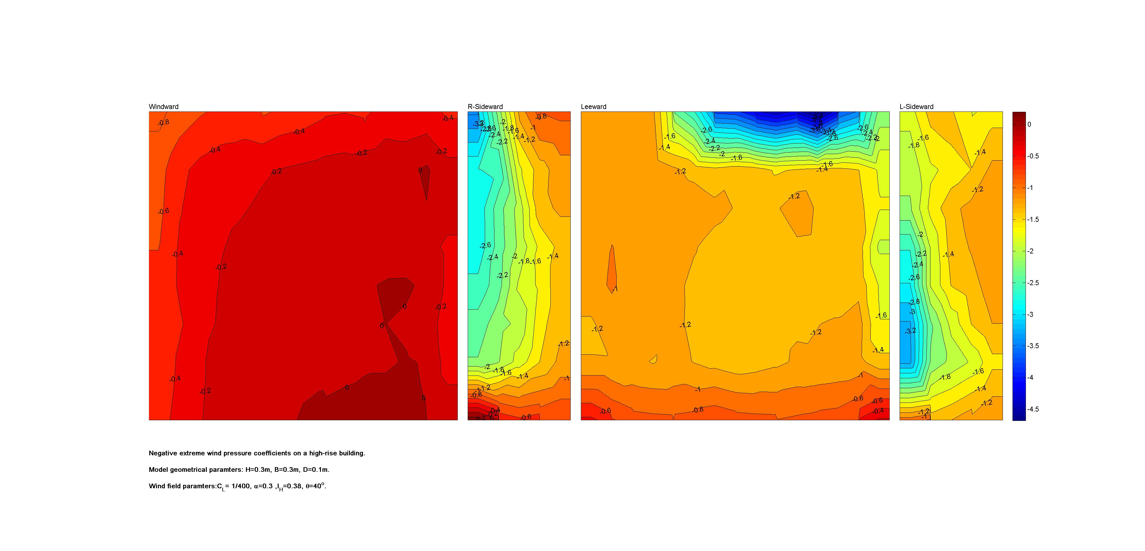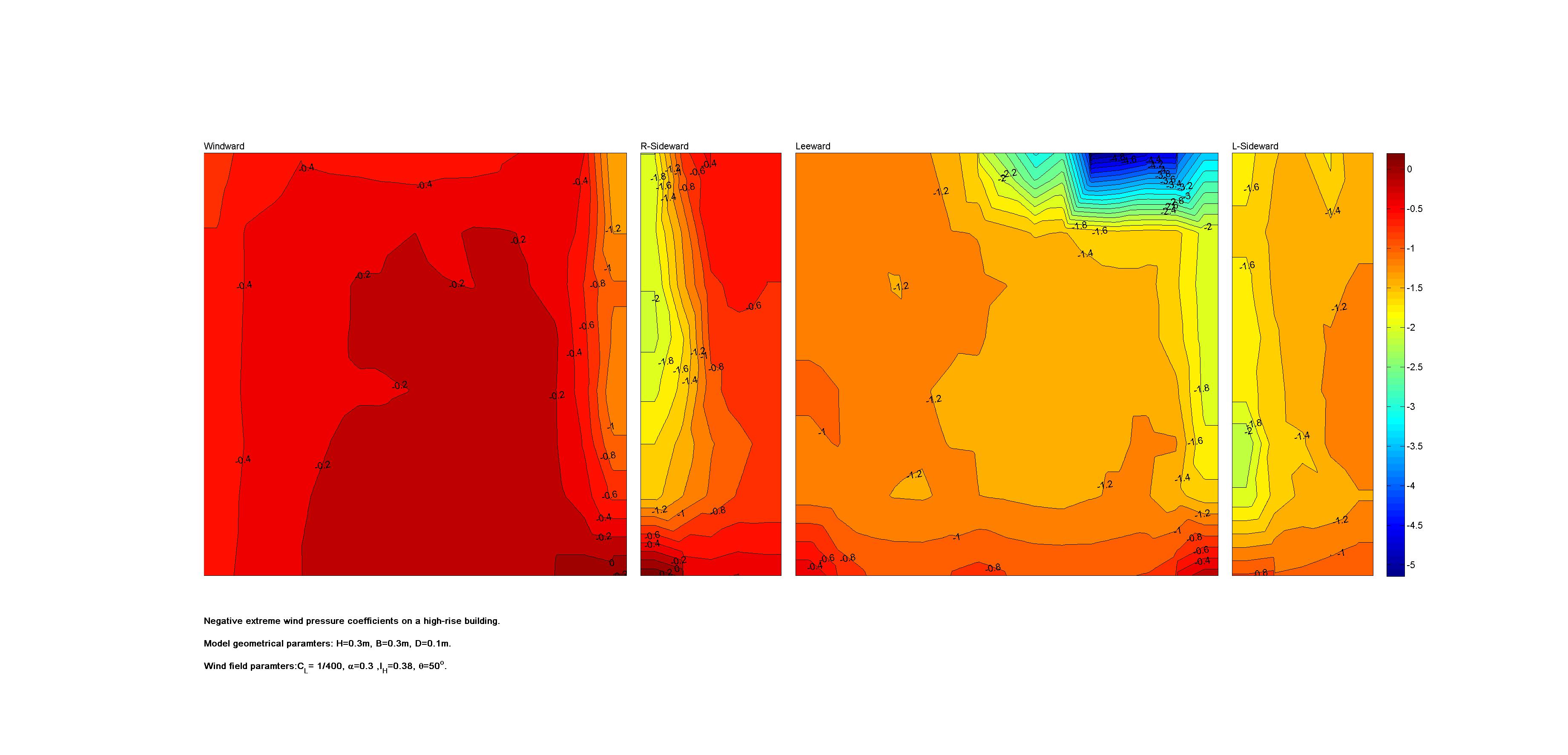 | Contours of local wind pressure coefficients |