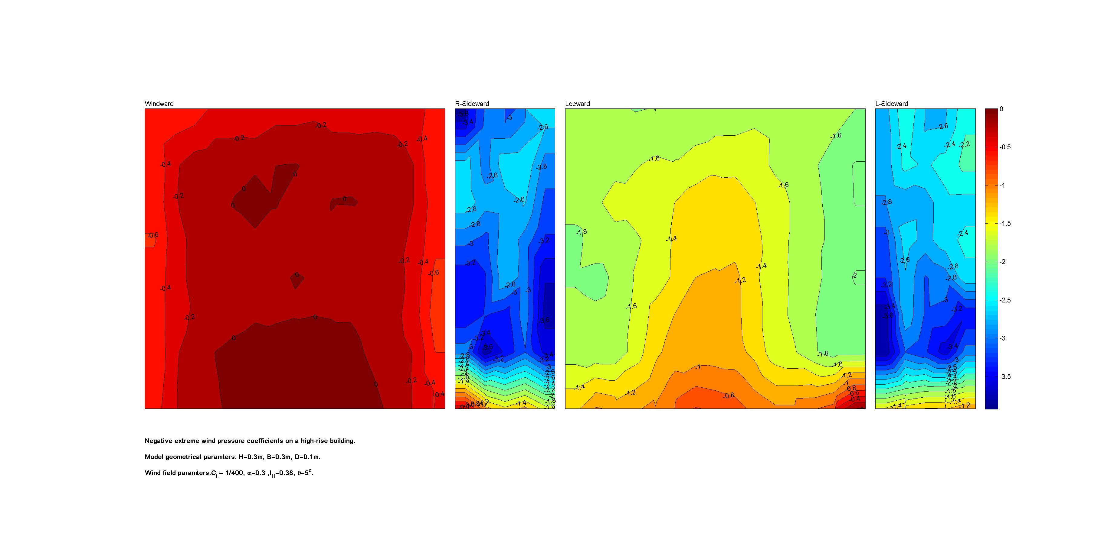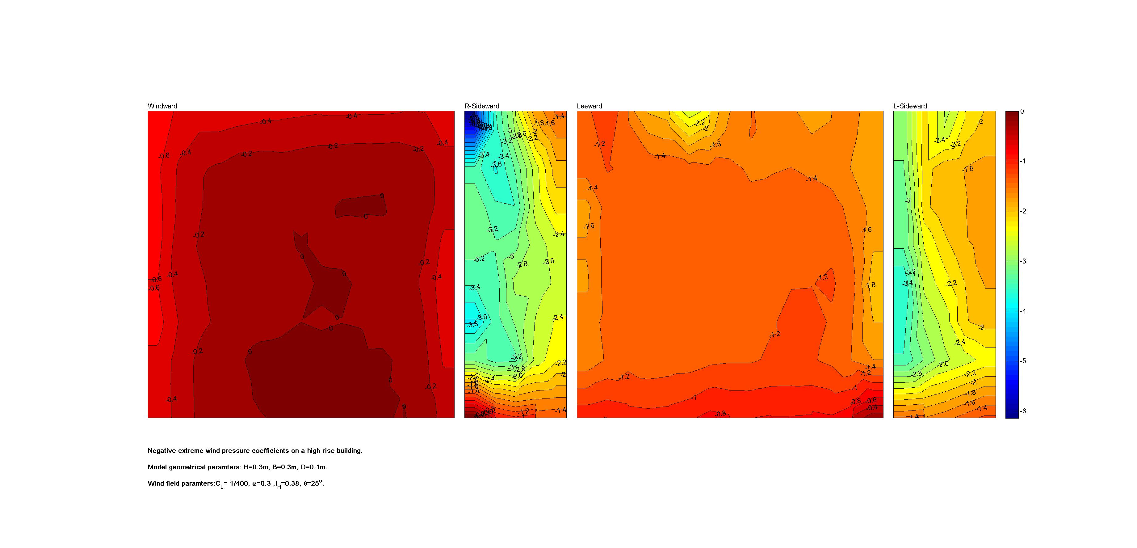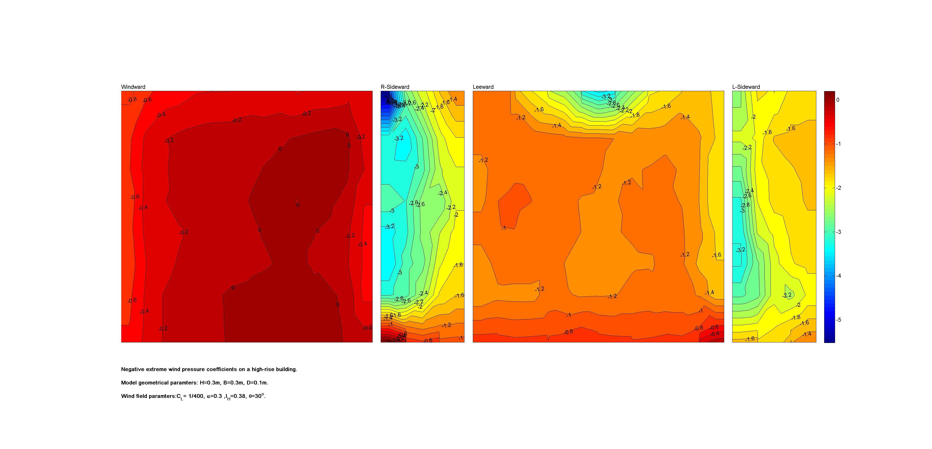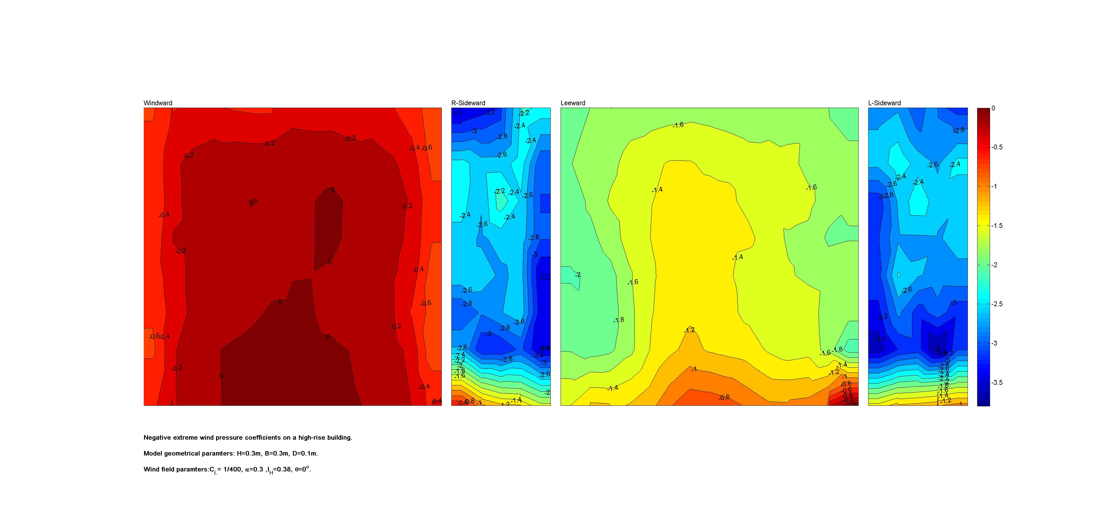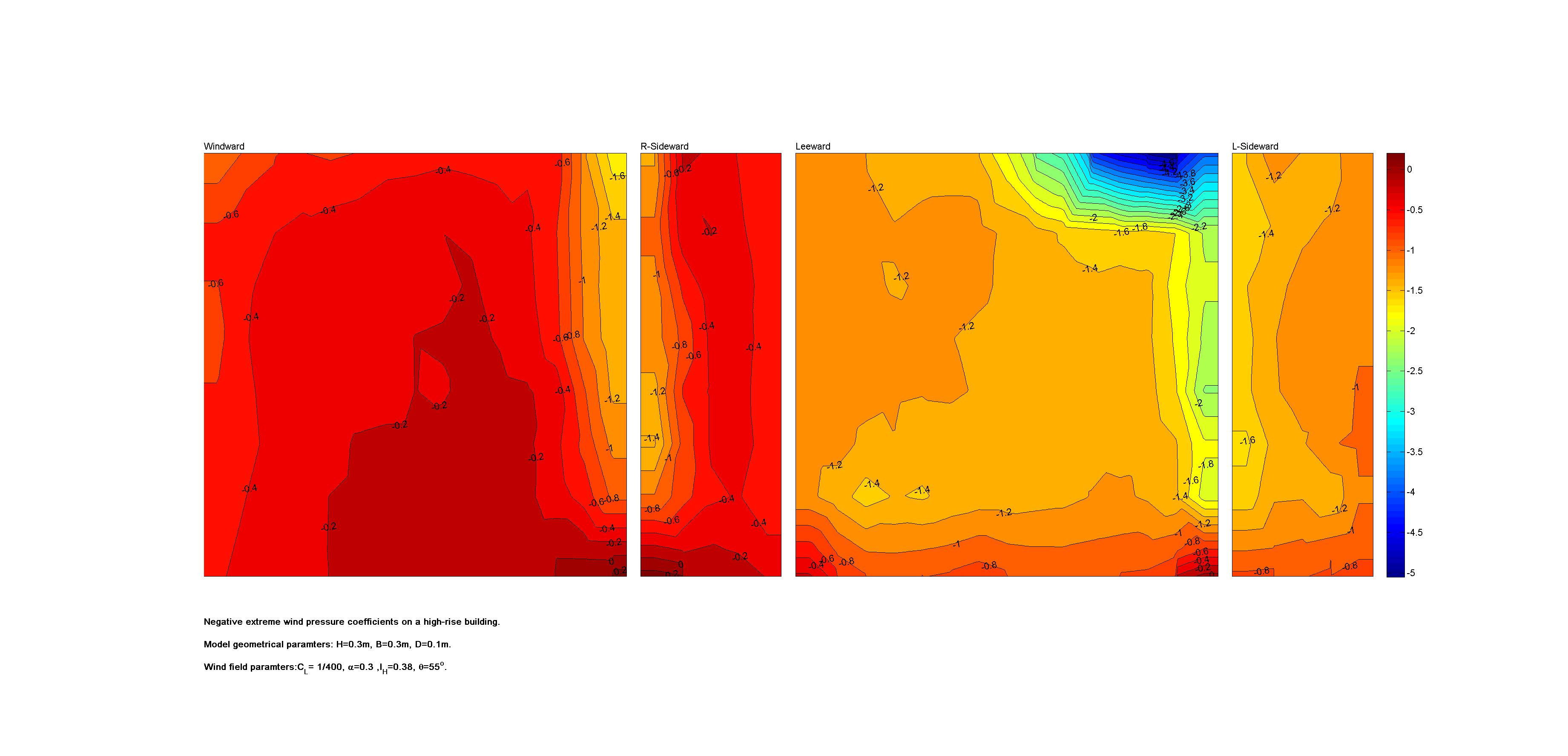| Contours of local wind pressure coefficients |
