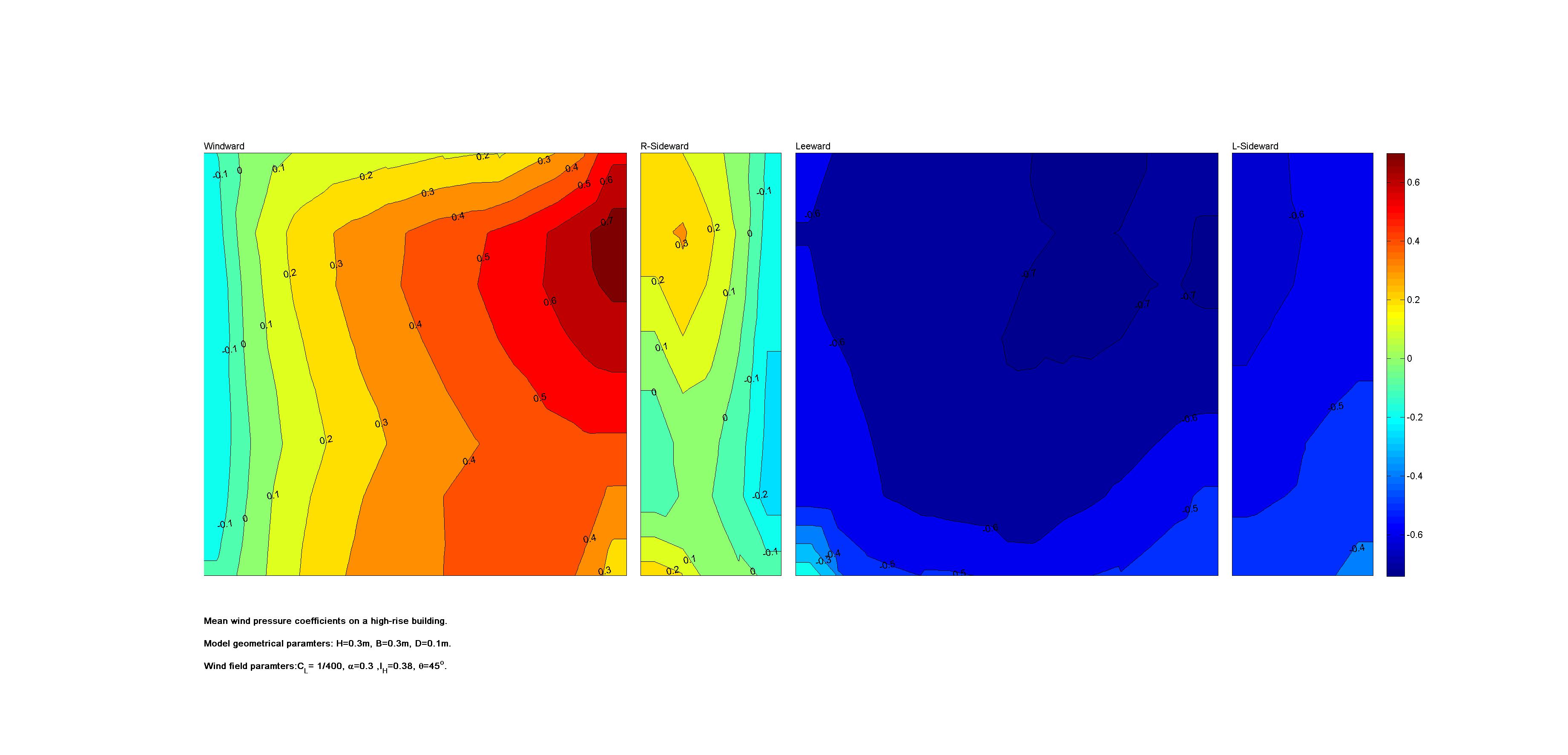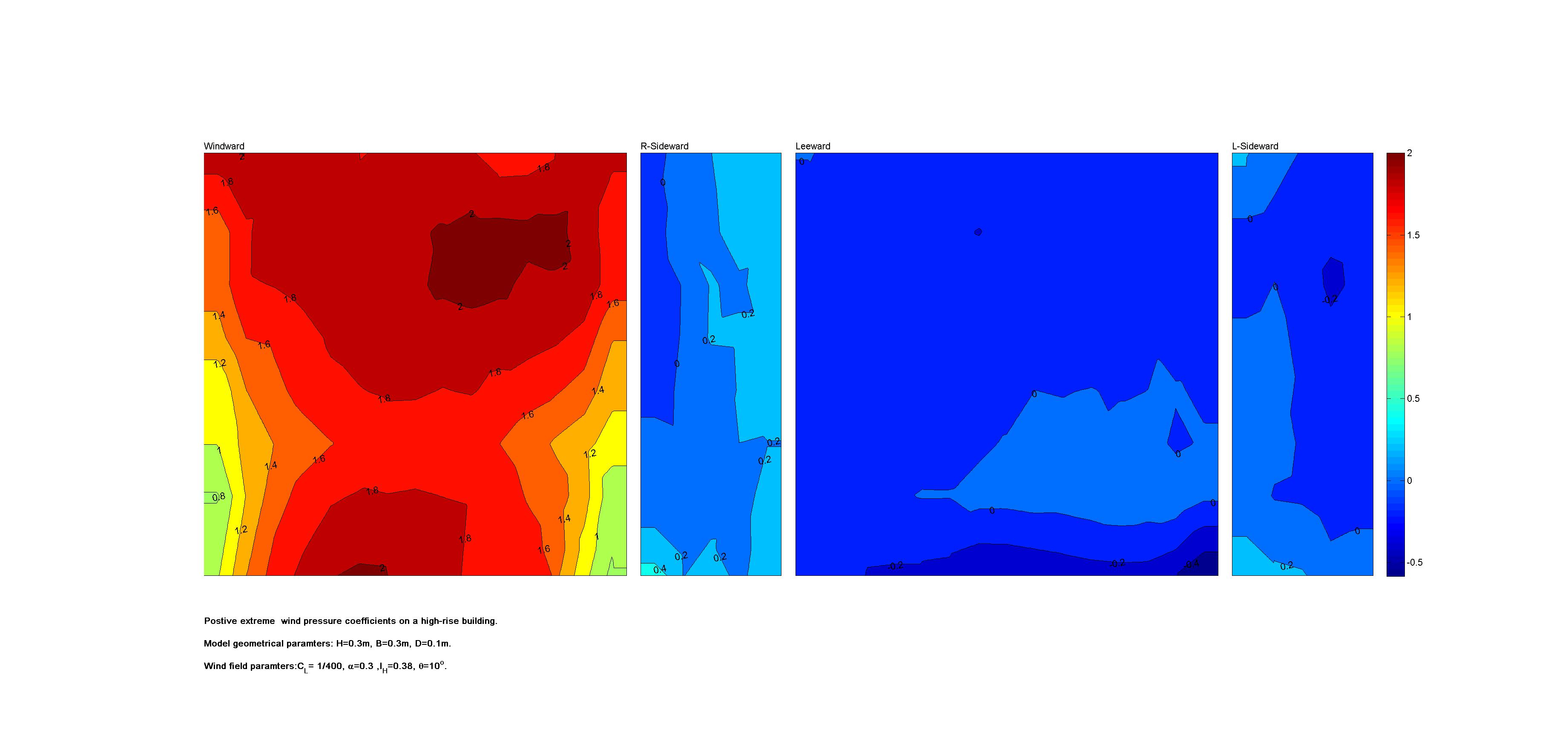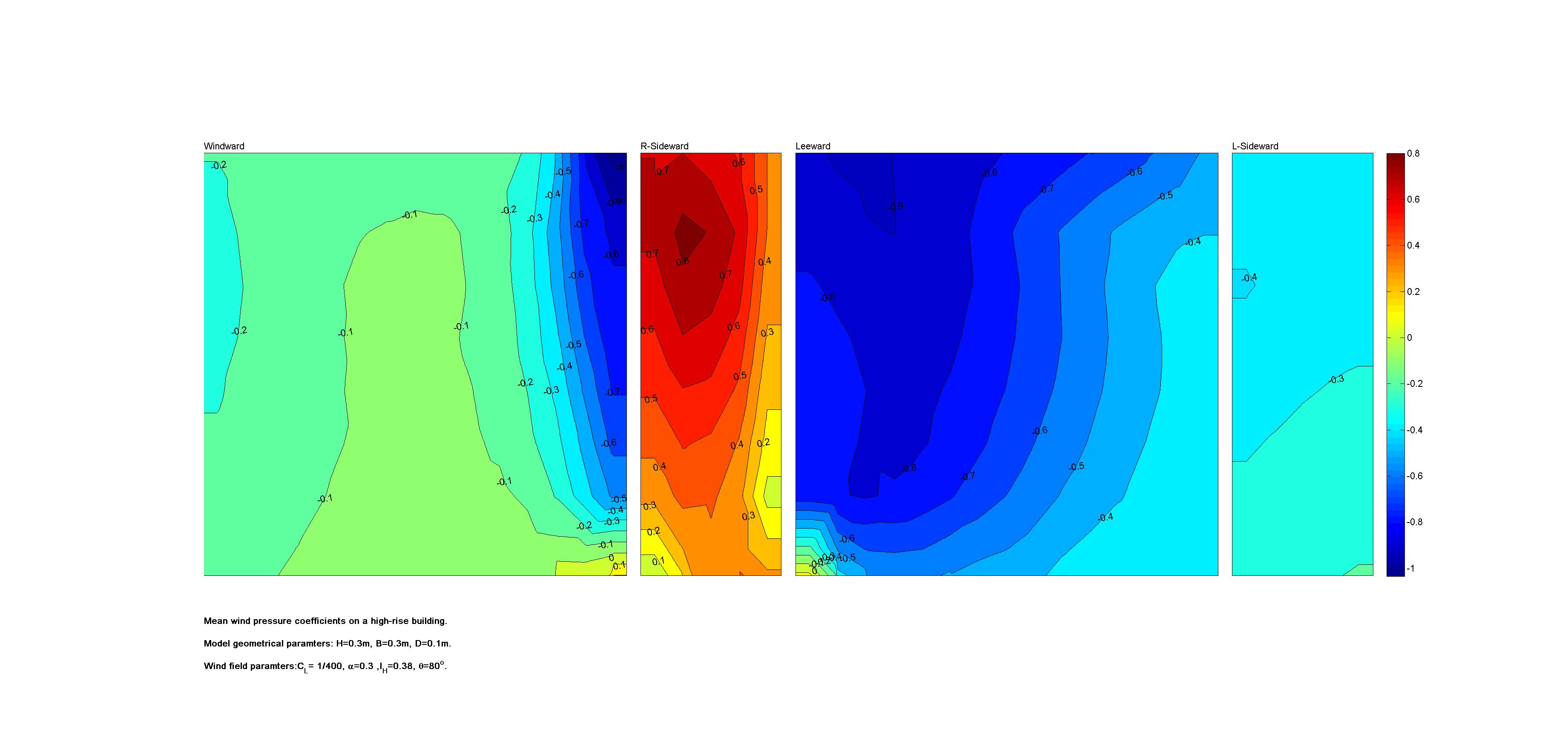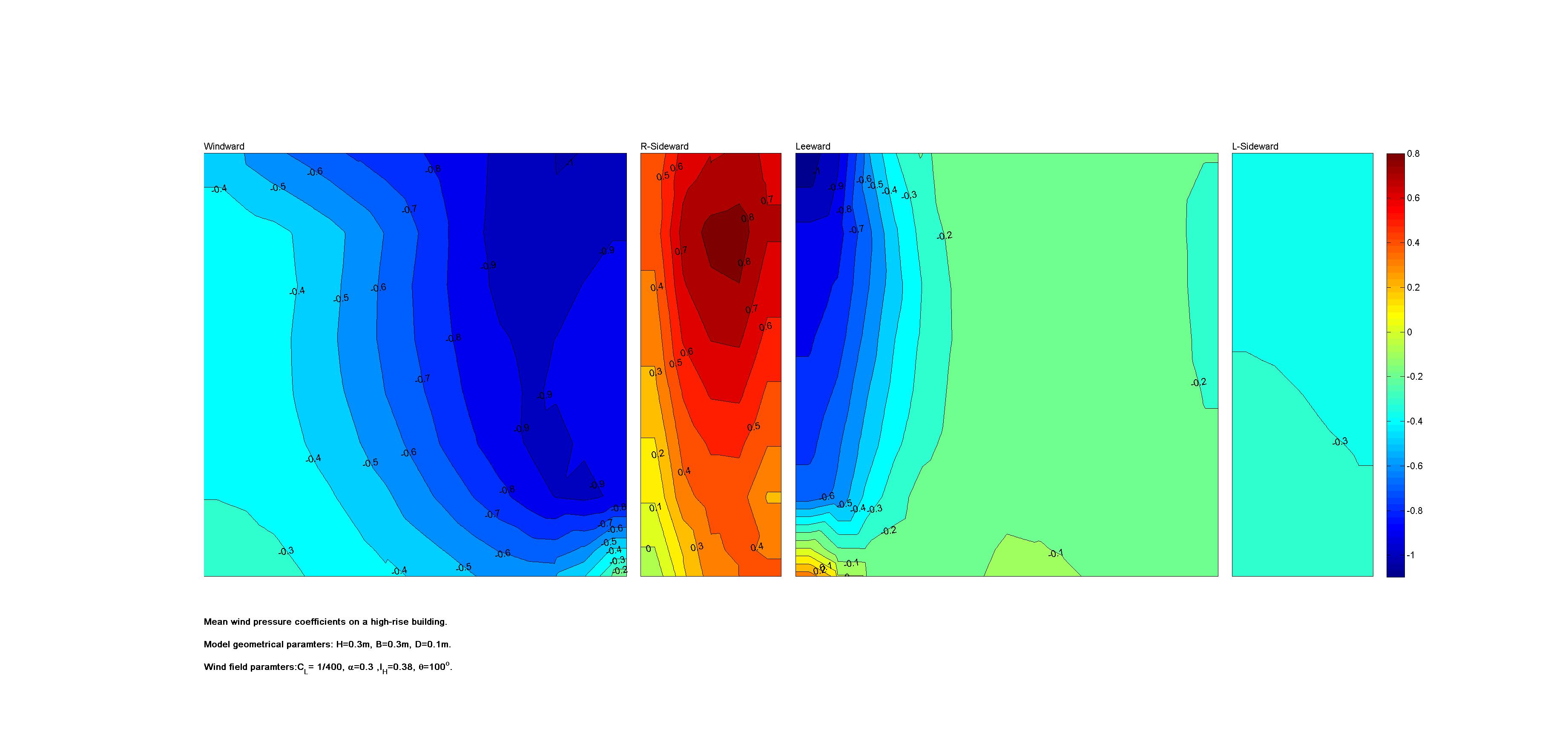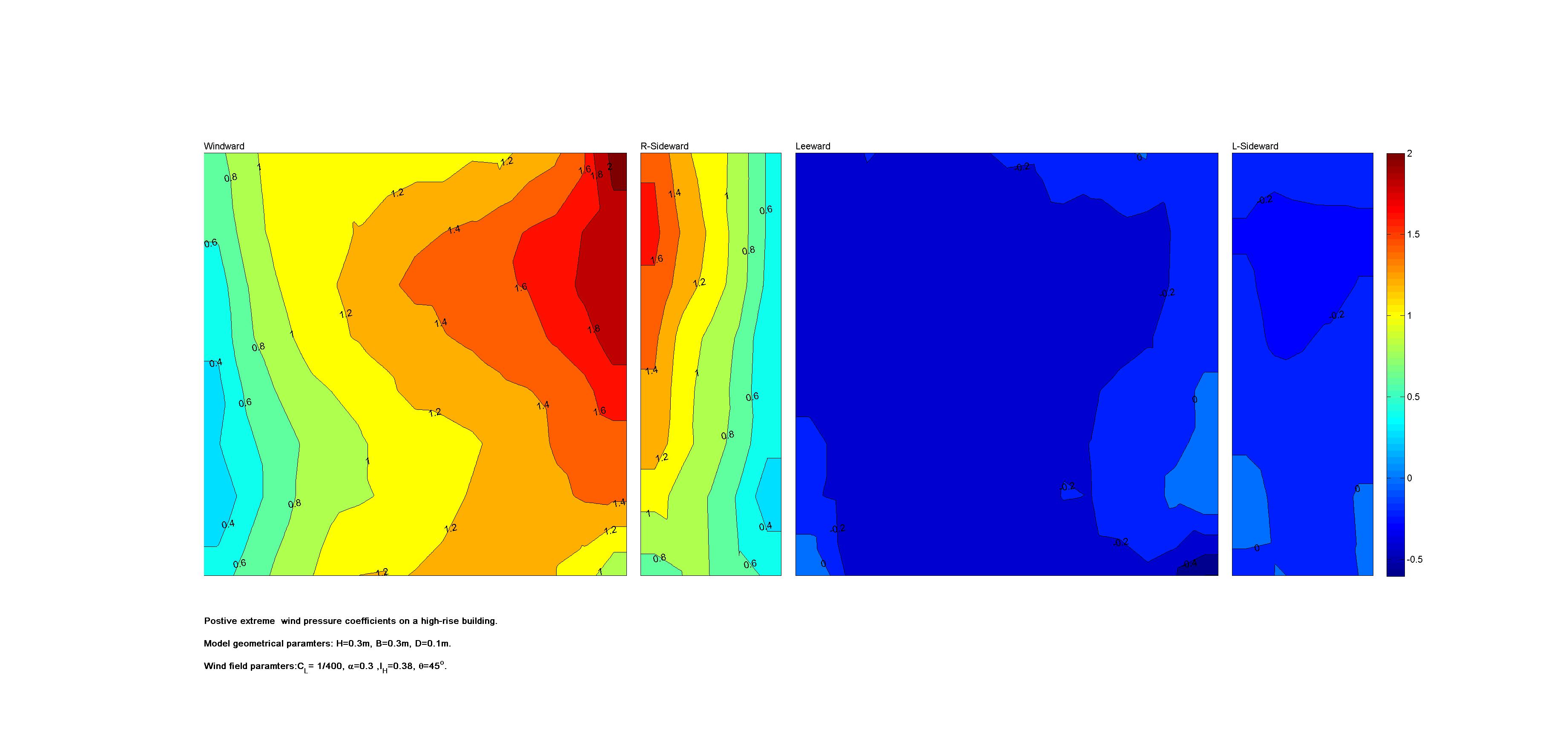 | Contours of local wind pressure coefficients |