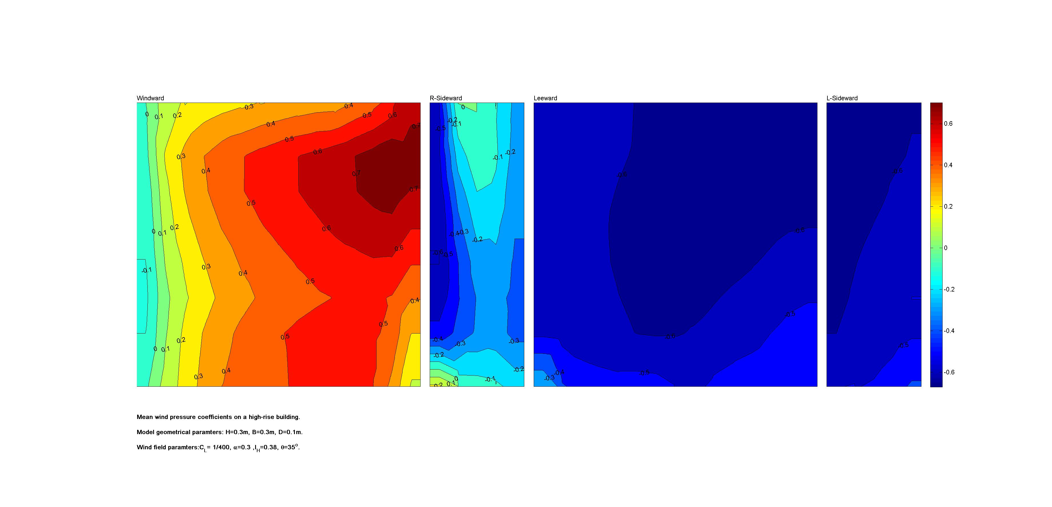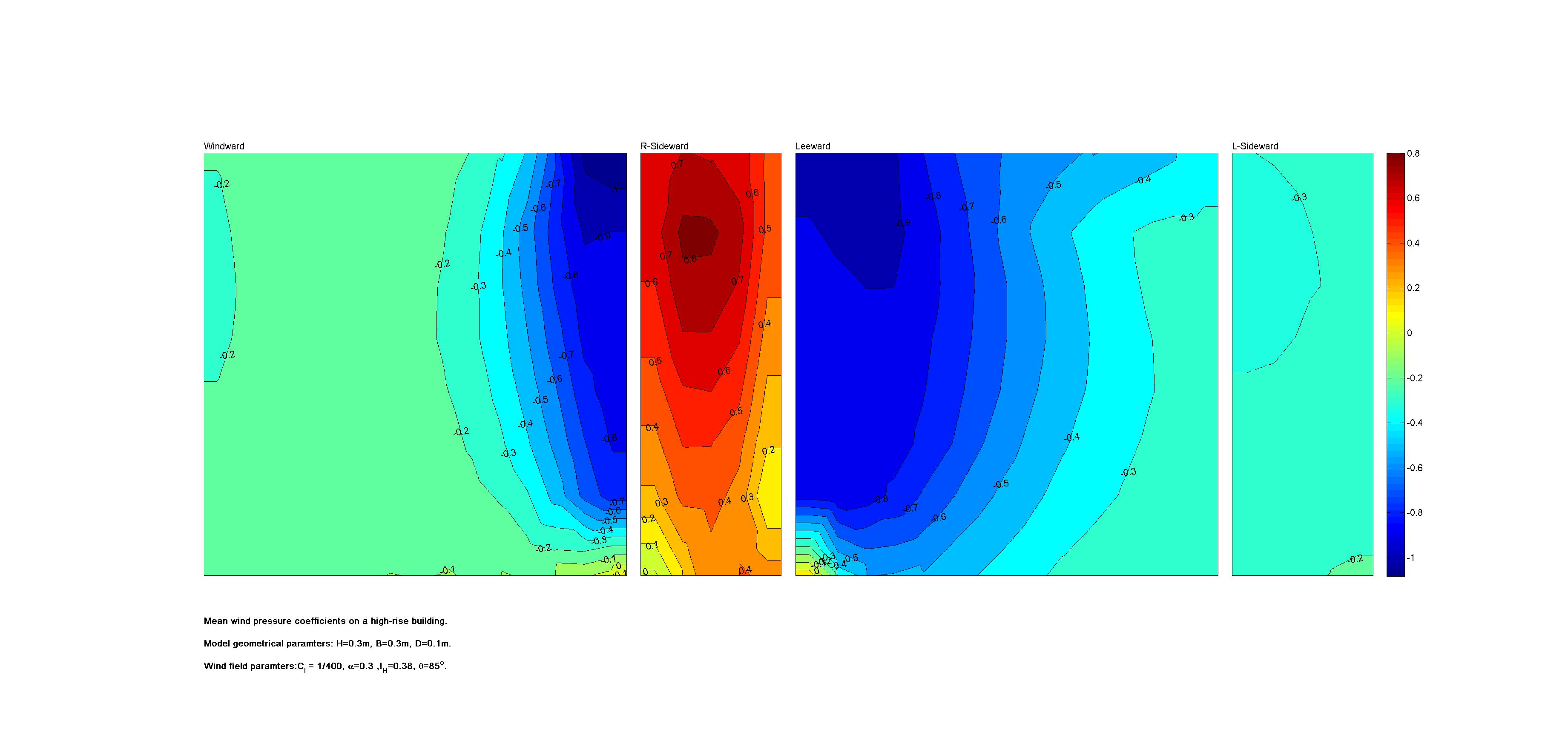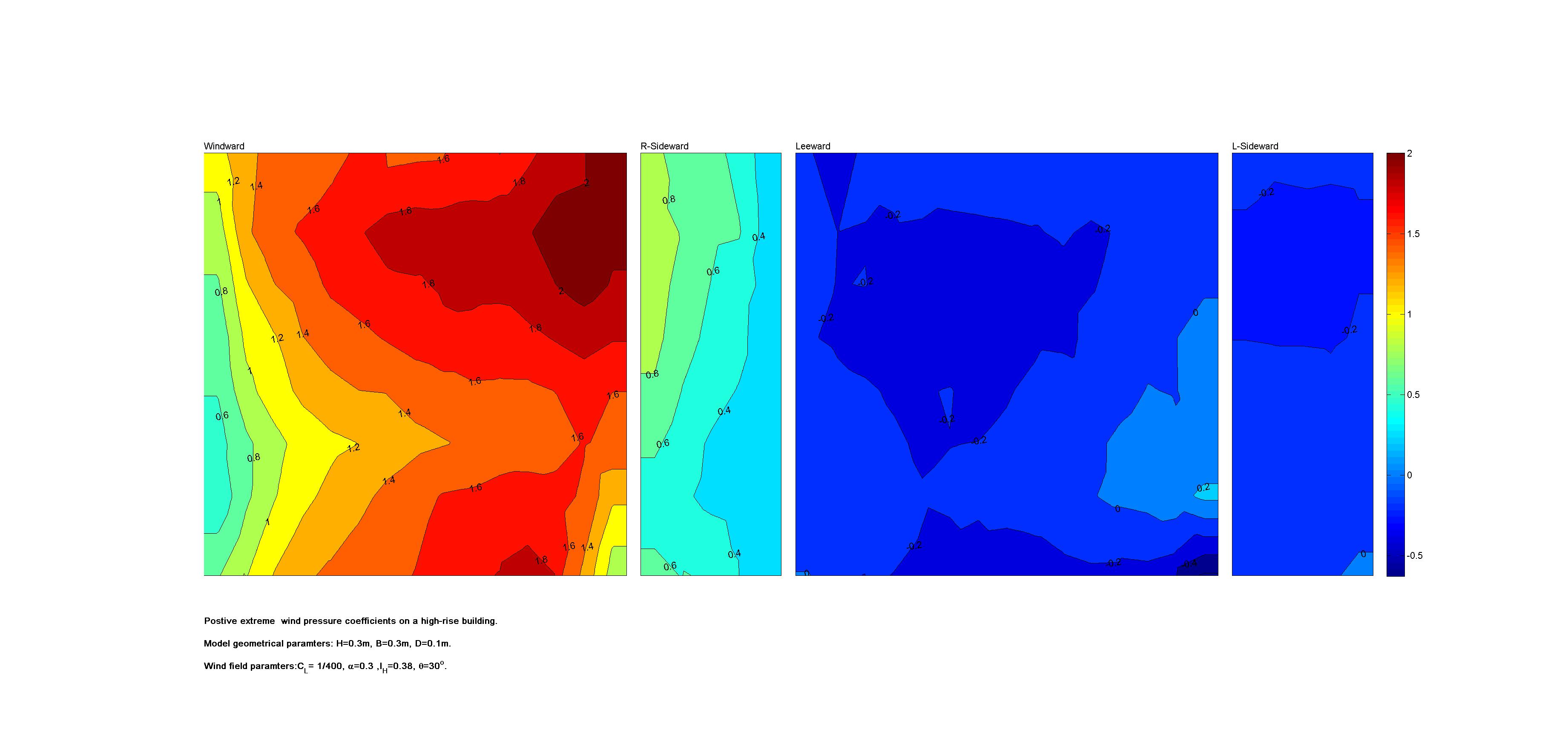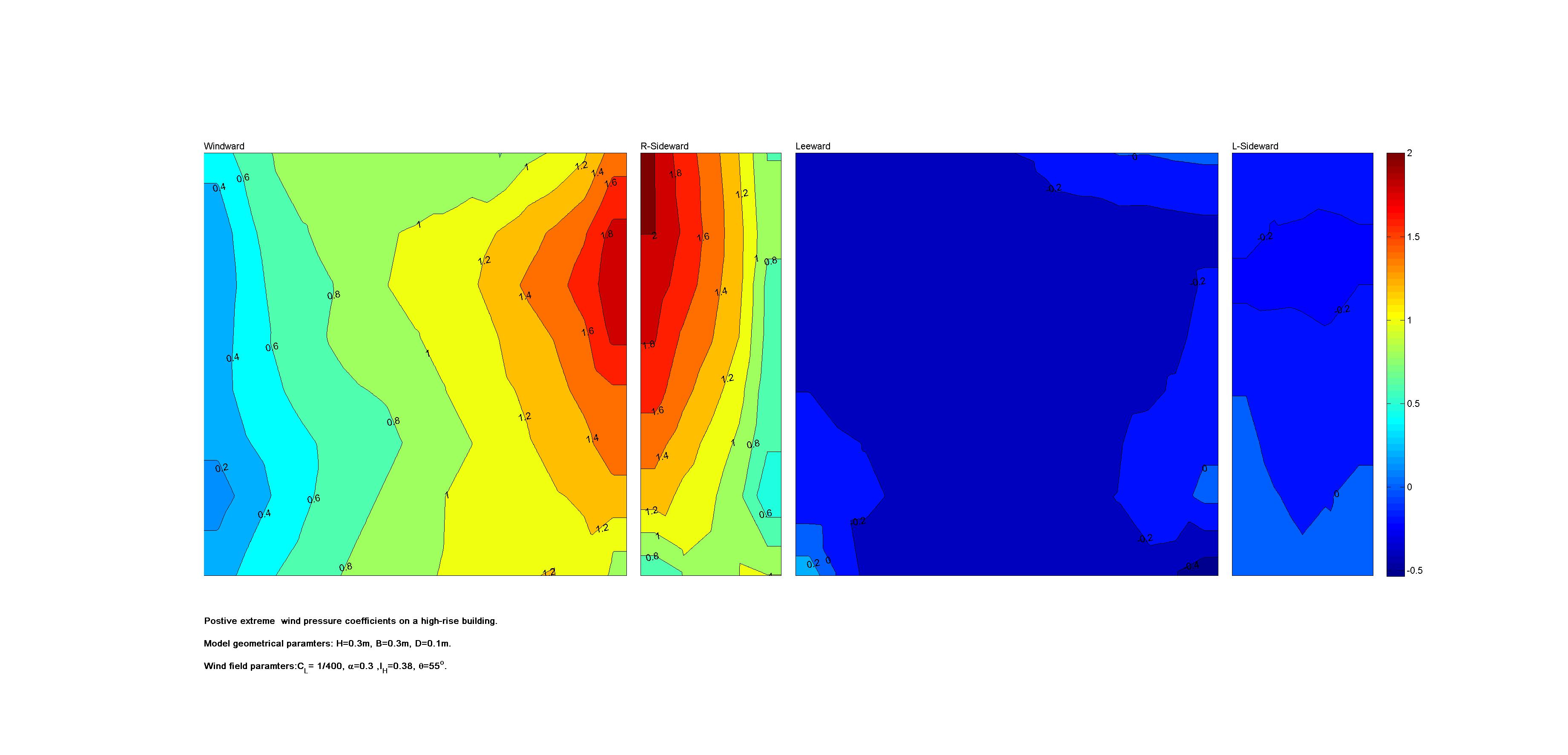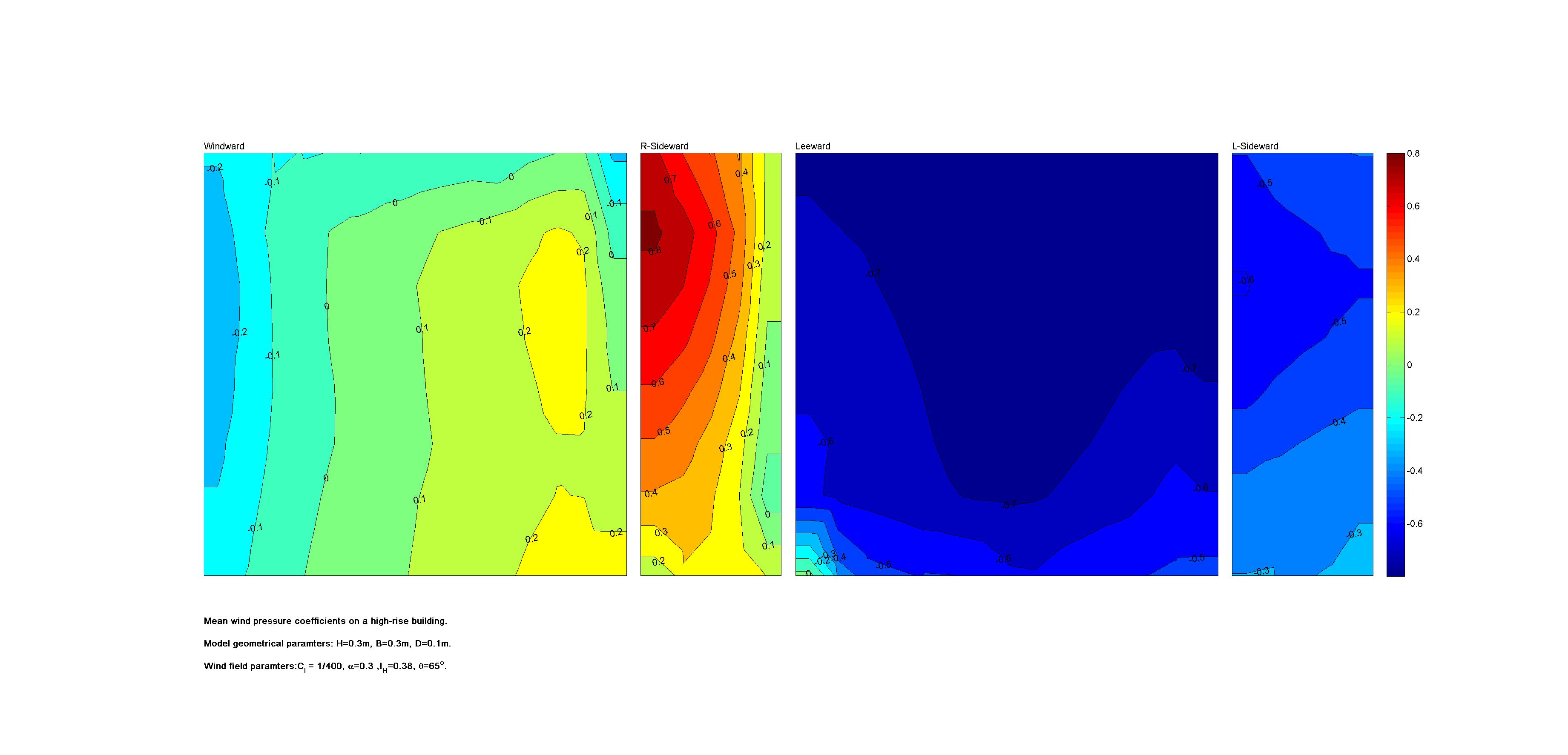 | Contours of local wind pressure coefficients |