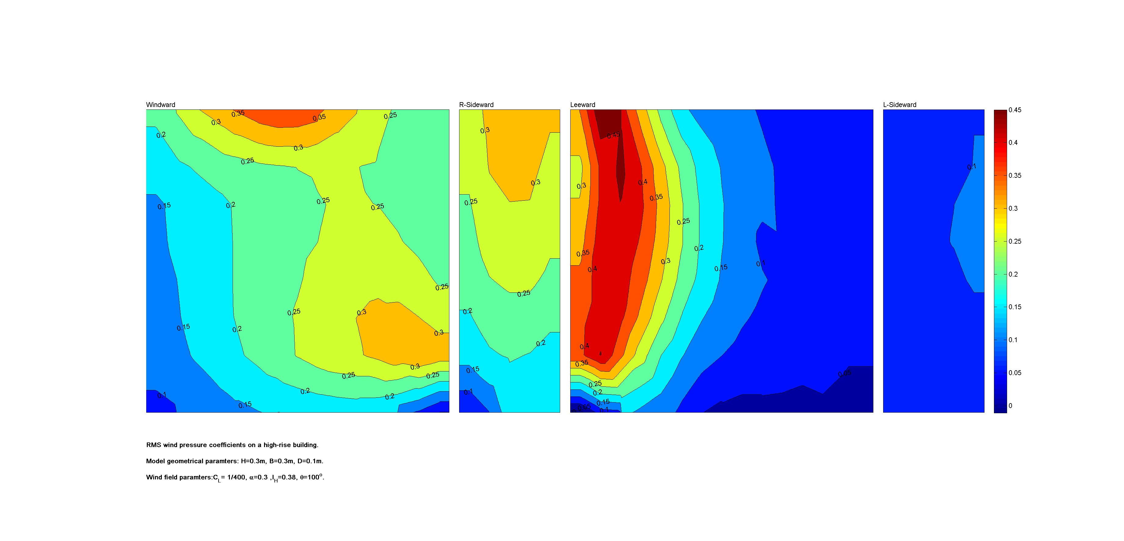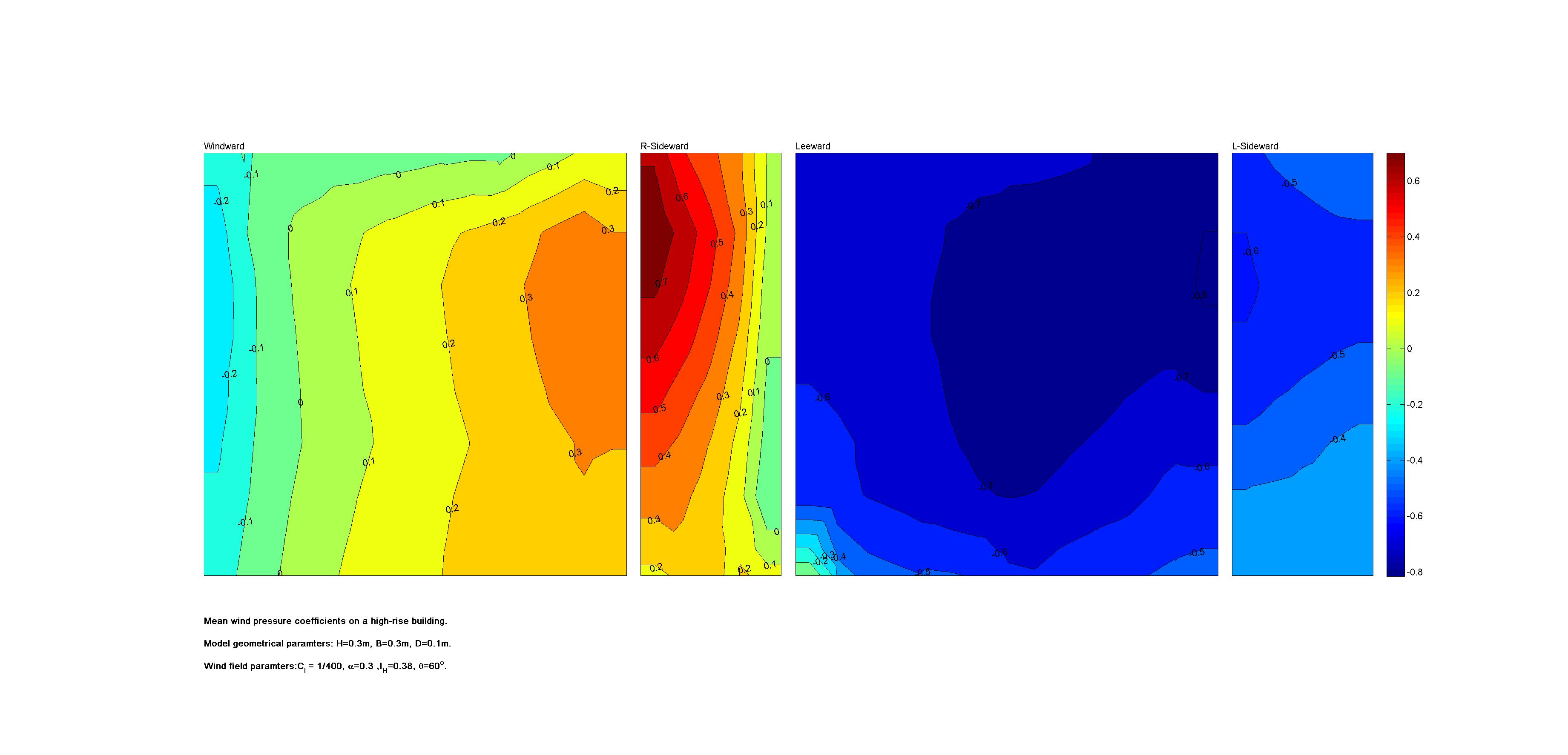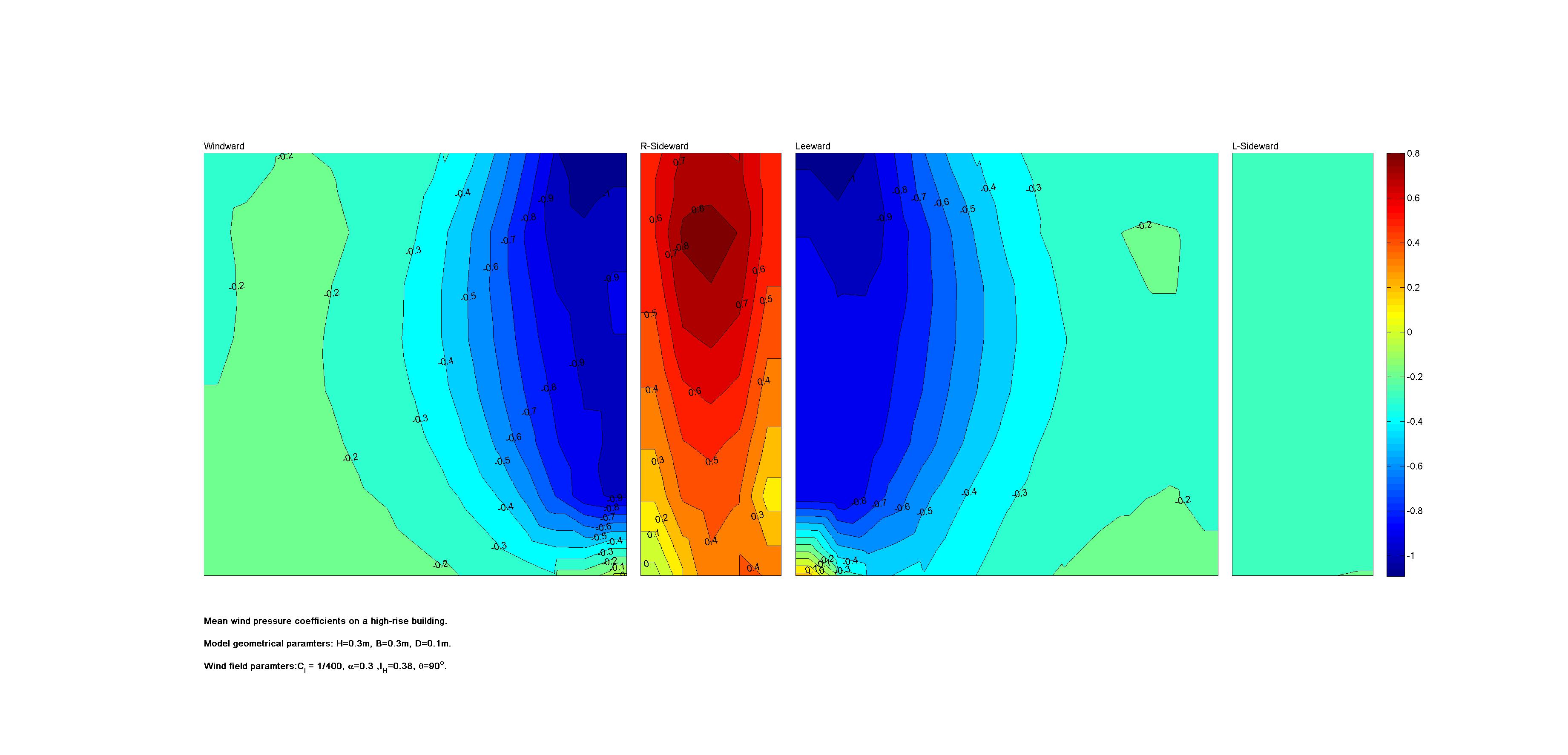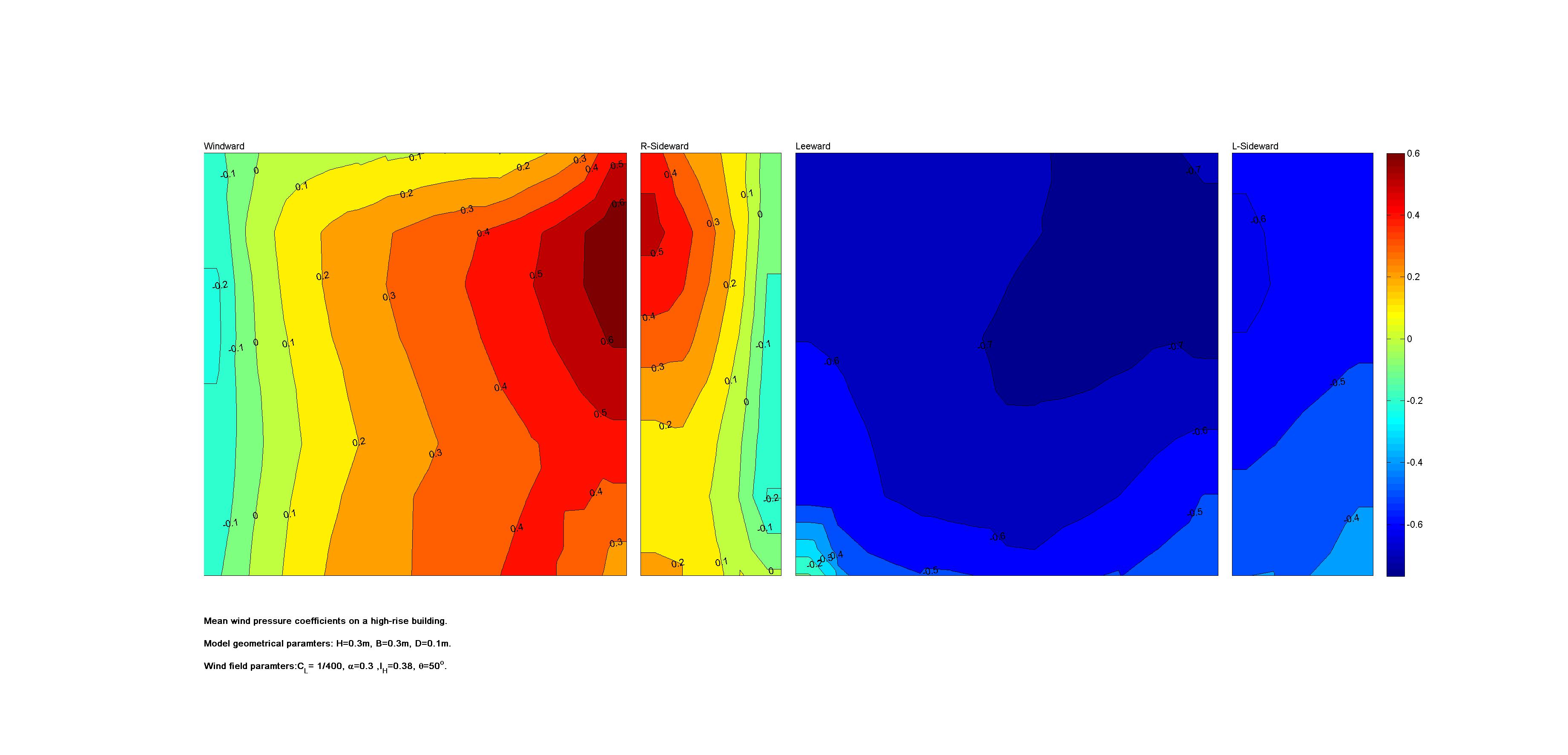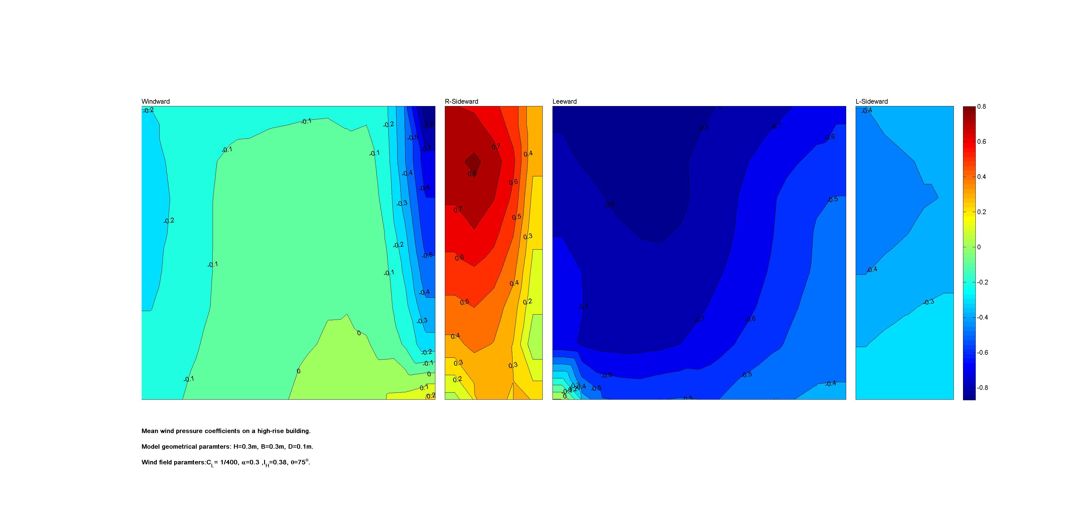 | Contours of local wind pressure coefficients |