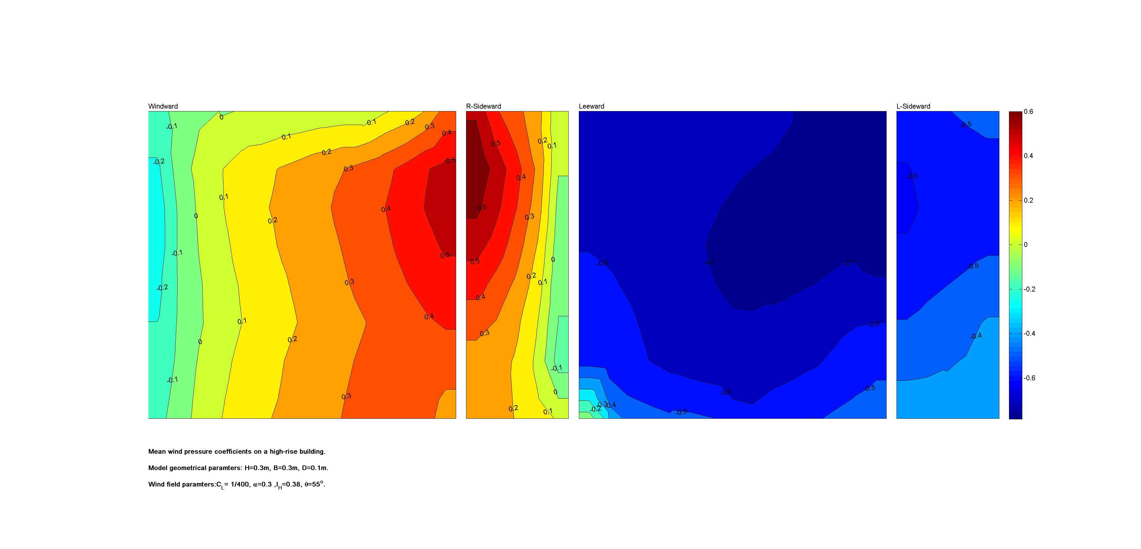 | Windward surface | Right sideward surface | leeward surface | Left sideward surface |